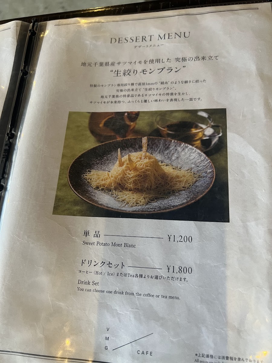 At VMG CAFE, the menu highlights creative offerings that celebrate local flavors. One standout dish that has captured the hearts of many is the Sweet Potato Mont Blanc. This dessert, crafted from the rich, sweet paste of locally sourced sweet potatoes, is not only delicious but also visually stunning, as it is artfully prepared right in front of you. Guests rave about its delicate, natural sweetness and the light, airy cream that tops it, providing a perfect balance with the crispy sweet potato chips and flaky pastry beneath.